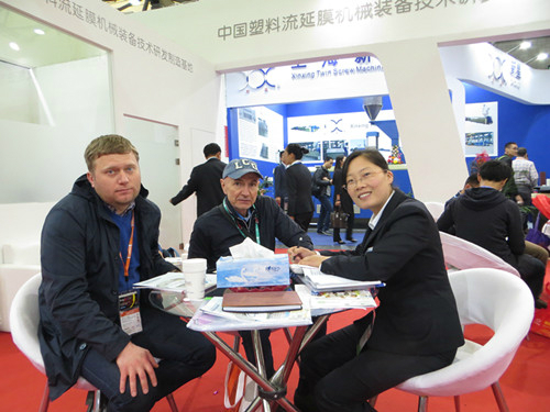 新樂(lè )華寶在此次展會(huì )中攜四軸全自動(dòng)高速高配纏繞膜機組和預拉伸復卷機參展。豐富的產(chǎn)品賣(mài)點(diǎn)創(chuàng )新的技術(shù),以及業(yè)界好評度,不僅讓有意向的客戶(hù)直接進(jìn)展位洽談,而且還吸引了大量參展的客戶(hù)駐足觀(guān)看。在為期四天的展會(huì )現場(chǎng),新樂(lè )華寶始終門(mén)庭若市,成為本展館的焦點(diǎn)所在。